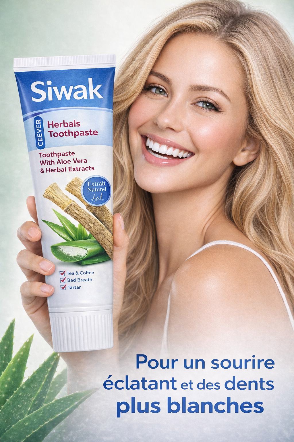 Notre dentifrice au siwak illumine le sourire, aide à blanchir naturellement les dents et révèle une allure plus attirante, jour après jour pour des dents plus blanches et un sourire naturellement irrésistible !